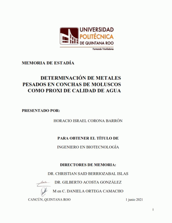 Tesis (I.B.) .-- Universidad Politécnica de Quintana Roo, 2021