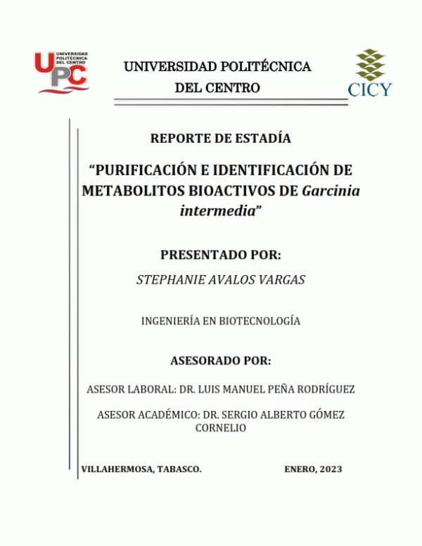 Purificación e identificación de metabolitos bioactivos de Garcinia intermedia [recurso electrónico] / Stephanie Avalos Vargas