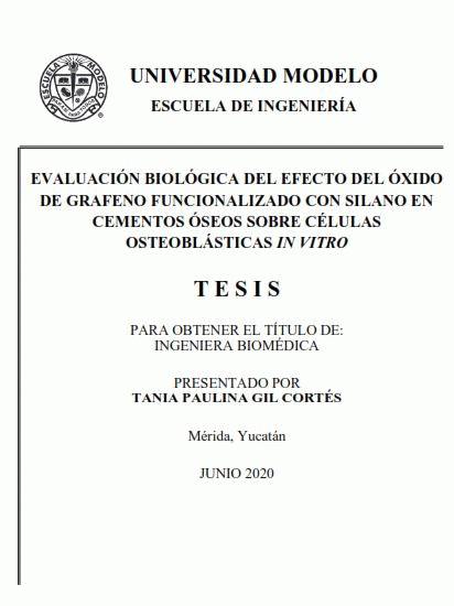 Evaluación biológica del efecto del óxido de grafeno funcionalizado con silano en cementos óseos sobre células osteoblásticas in vitro [recurso electrónico] / Tania Paulina Gil Cortés