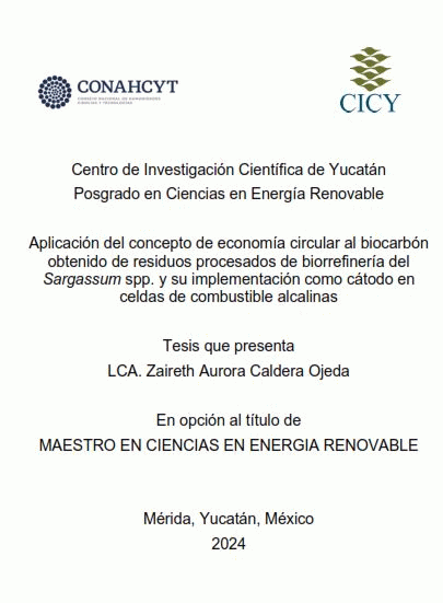 Aplicación del concepto de economía circular al biocarbón obtenido de residuos procesados de biorrefinería del Sargassum spp. y su implementación como cátodo en celdas de combustible alcalinas [recurso electrónico] / Zaireth Aurora Caldera Ojeda