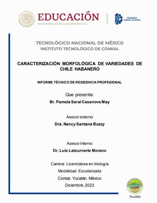 Caracterización morfológica de variedades de chile habanero [recurso electrónico] / Pamela Sarai Casanova May