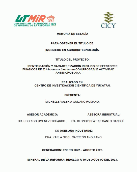 Identificación y caracterización in silico de efectores fúngicos de Trichoderma harzianum con probable actividad antimicrobiana / Michelle Valeria Quijano Romano [recurso electrónico]