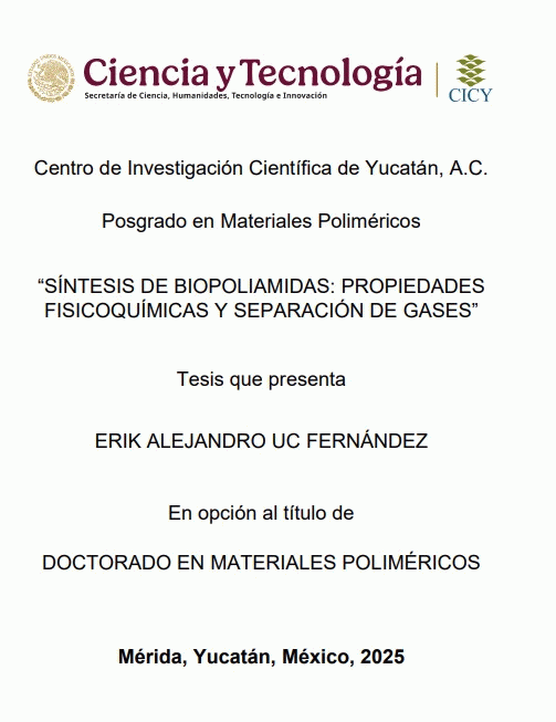 Síntesis de biopoliamidas: propiedades fisicoquímicas y separación de gases Erik Alejandro Uc Fernández. [recurso electrónico] /