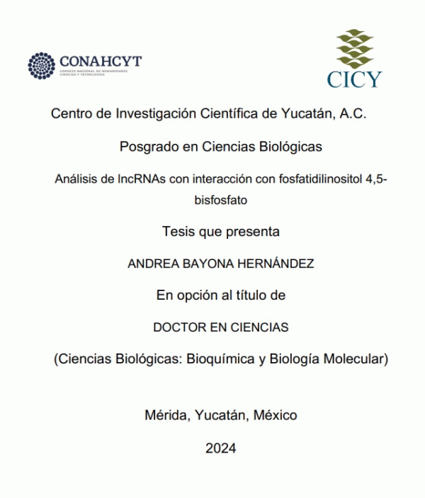 Análisis de IncRNAs con interacción con fosfatidilinositol 4,5-bisfosfato Andrea Bayona Hernández. [recurso electrónico] /