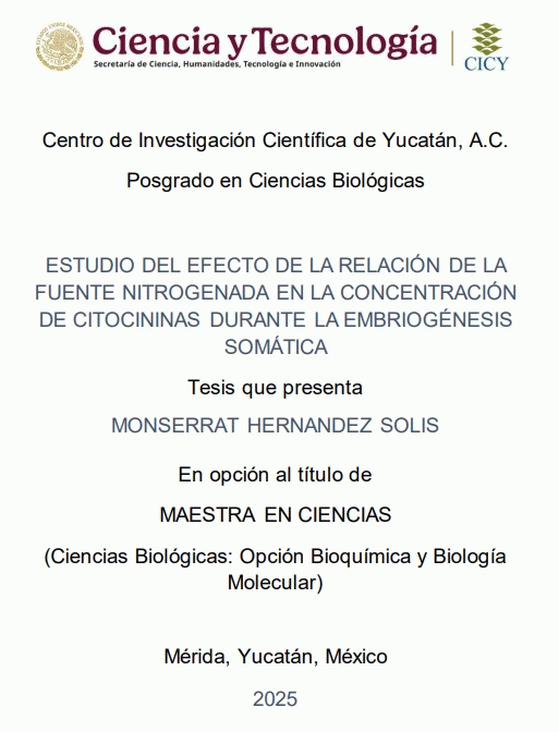 Estudio del efecto de la relación de la fuente nitrogenada en la concentración de citocininas durante la embriogénesis somática Monserrat Hernandez Solís. [recurso electrónico] /