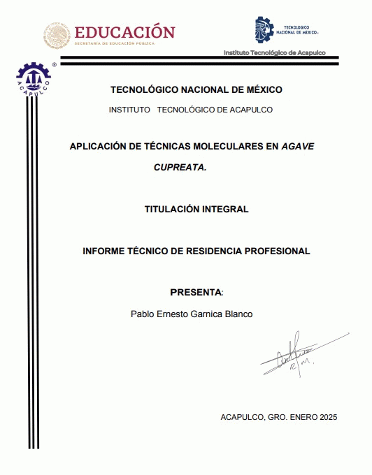 Aplicación de técnicas moleculares en Agave cupreata. Pablo Ernesto Garnica Blanco. [recurso electrónico] /
