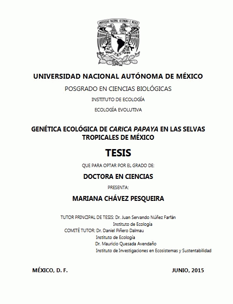 Genética ecológica de Carica papaya en las selvas tropicales de México Mariana Chávez Pesqueira. [recurso electrónico] /