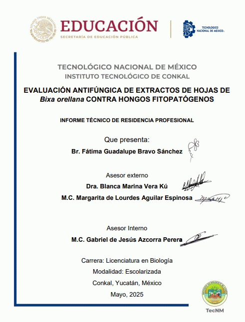 Evaluación antifúngica de extractos de hojas de Bixa orellana contra hongos fitopatógenos Fátima Guadalupe Bravo Sánchez. [recurso electrónico] /