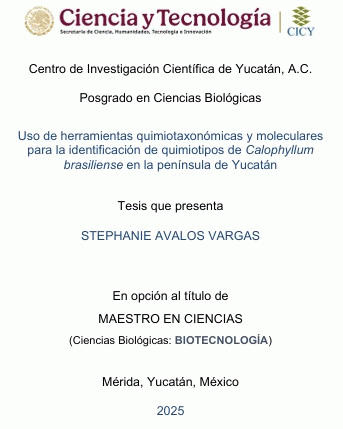 Uso de herramientas quimiotaxonómicas y moleculares para la identificación de quimiotipos de Calophyllum brasiliense en la península de Yucatán Stephanie Avalos Vargas. [recurso electrónico] /