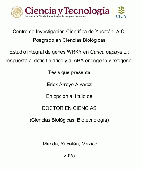 Estudio integral de genes WRKY en Carica papaya L. : respuesta al déficit hídrico y al ABA endógeno y exógeno Erick Arroyo Alvarez. [recurso electrónico] /