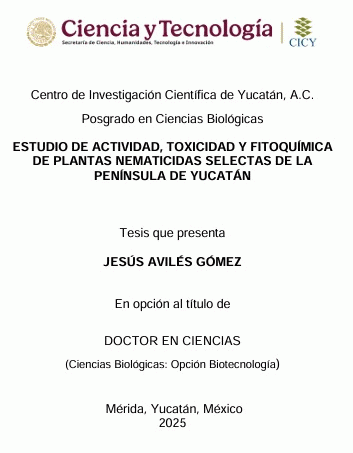 Estudio de la actividad, toxicidad y fitoquímica de plantas nematicidas selectas de la península de Yucatán Jesús Avilés Gómez. [recurso electrónico] /