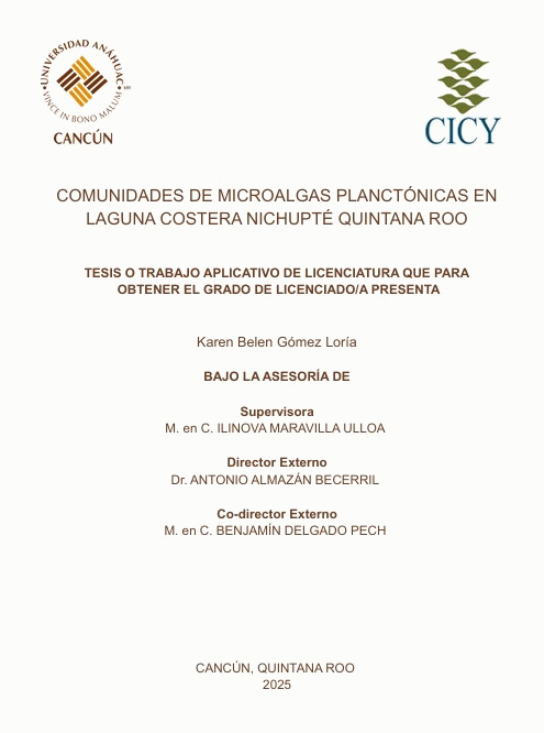 Comunidades de microalgas planctónicas en laguna costera Nichupté Quintana Roo Karen Belen Gómez Loría. [recurso electrónico] /