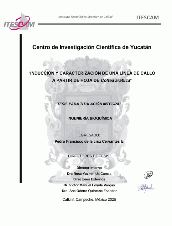 Inducción y caracterización de una línea de callo a partir de la hoja de Coffea arabica Pedro Francisco de la Cruz Cervantes Ic. [recurso electrónico] /