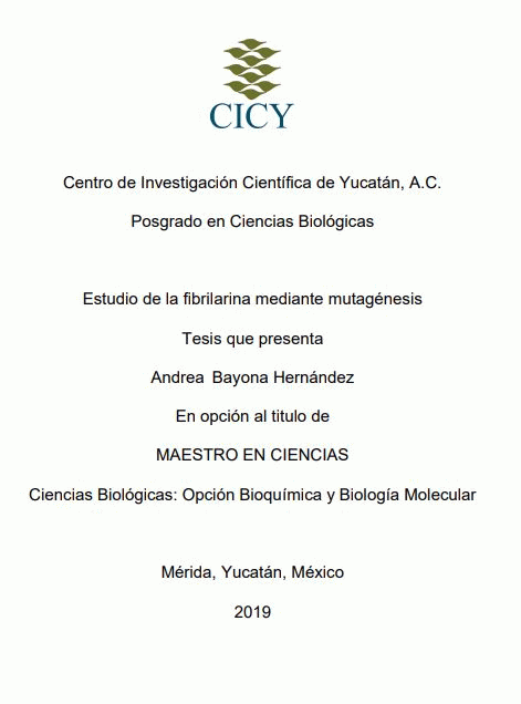 Estudio de la fibrilarina mediante mutagénesis [recurso electrónico] / Andrea Bayona Hernández