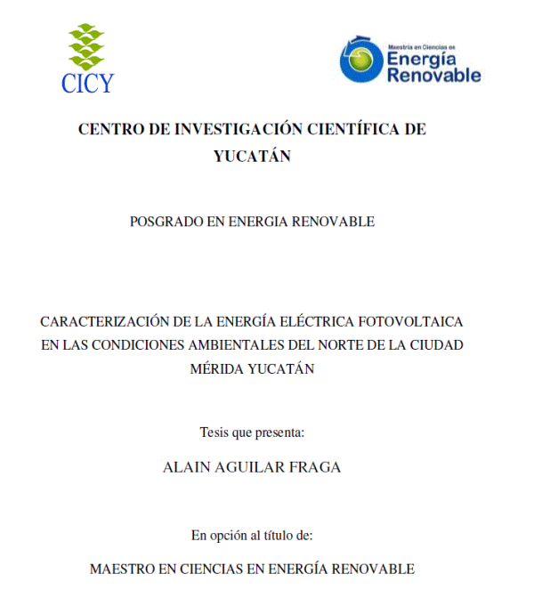 Caracterización de la energía eléctrica fotovoltaica en las condiciones ambientales del norte de la ciudad de Mérida Yucatán [recurso electrónico] / Alain Aguilar Fraga