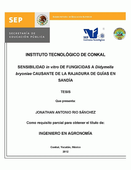 Sensibilidad in vitro de fungicidas a Didymella bryoniae causante de la rajadura de guías en sandía [recurso electrónico] / Jonathan Antonio Rio Sánchez