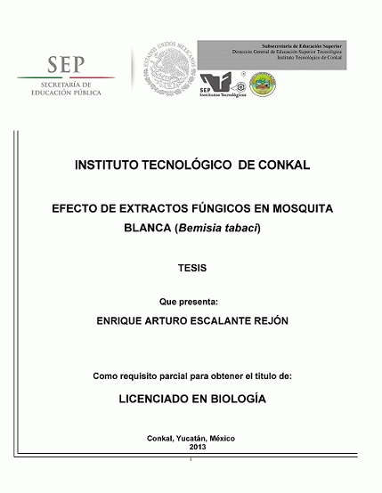 Efecto de extractos fúngicos en mosquita blanca (Bemisia tabici) [recurso electrónico] / Enrique Arturo Escalante Rejón