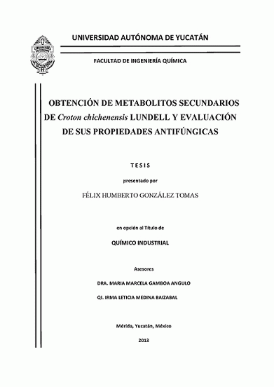Obtención de metabolitos secundarios de Croton chichenensis Lundell y evaluación de sus propiedades antifúngicas [recurso electrónico] / Felix Humberto González Tomás