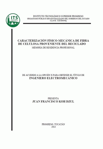 Caracterización físico-mecánica de fibra de celulosa proveniente del reciclado [recurso electrónico] / Juan Francisco Koh Dzul