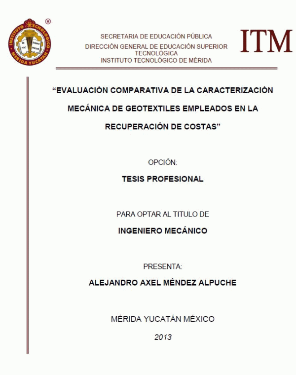 Evaluación comparativa de la caracterización mecánica de geotextiles empleados en la recuperación de costas [recurso electrónico] / Alejandro Axel Méndez Alpuche