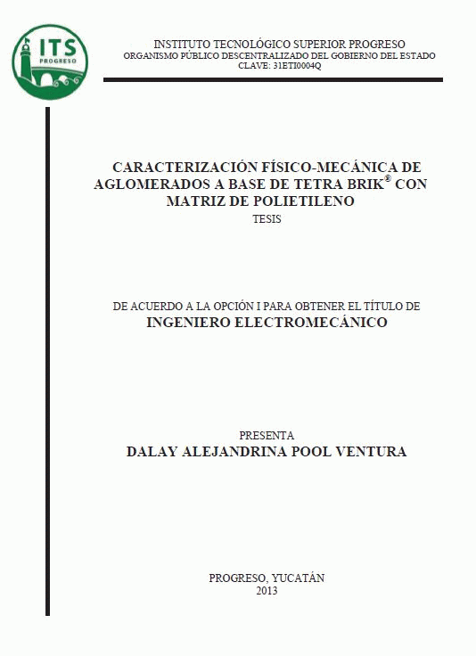 Caracterización físico - mecánica de aglomerados a base de tetra brik con matriz de polietileno [recurso electrónico] / Dalay Alejandrina Pool Ventura