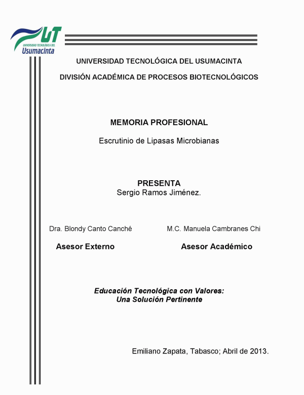 Tesis (I.P.B.) .-- Universidad Tecnológica del Usumacinta. División Académica de Procesos Biotecnológicos, 2013.
