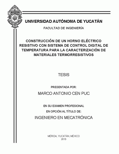 Construcción de un horno eléctrico resistivo con sistema de control digital de temperatura para la caracterización de materiales termorresistivos [recurso electrónico] / Marco Antonio Cen Puc
