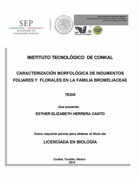 Caracterización morfológica de indumentos foliares y florales en la familia Bromeliaceae [recurso electrónico] / Esther Elizabeth Herrera Canto