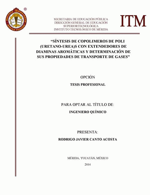 Síntesis de copolímeros de poli(uretano-urea)s con extendedores de diaminas aromáticas y determinación de sus propiedades de transporte de gases / Rodrigo Javier Canto Acosta