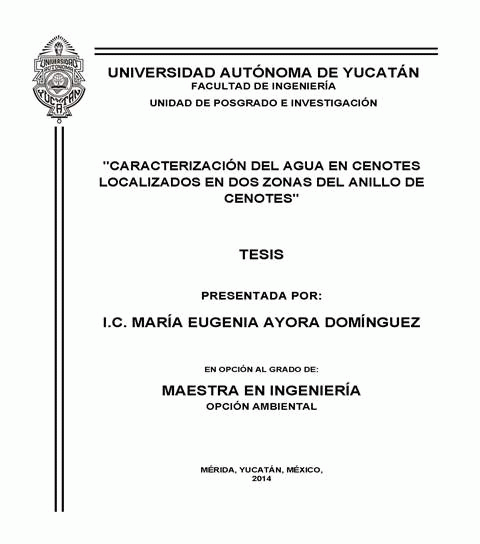 Caracterización del agua en cenotes localizados en dos zonas del anillo de cenotes [recurso electrónico] / María Eugenia Ayora Domínguez