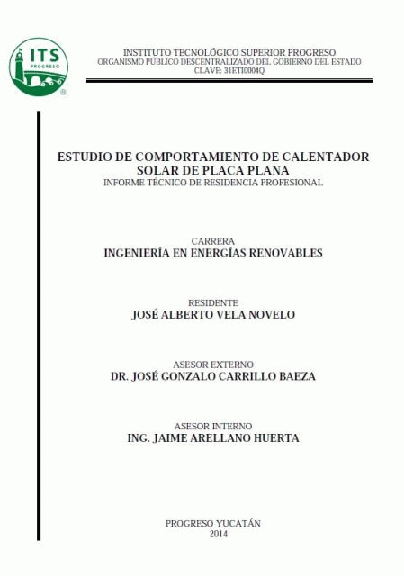 Estudio del comportamiento de calentador solar de placa plana [recurso electrónico] / José Alberto Vela Novelo