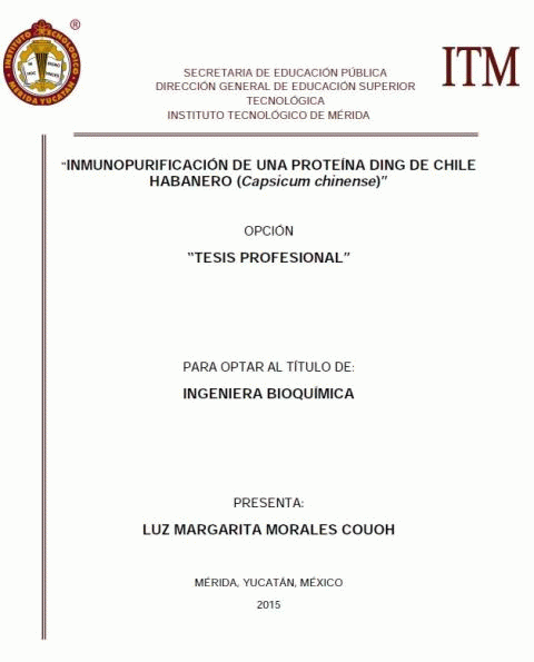 Inmunopurificación de una proteína ding de chile habanero (Capsicum chinense) [recurso electrónico] / Luz Margarita Morales Couoh
