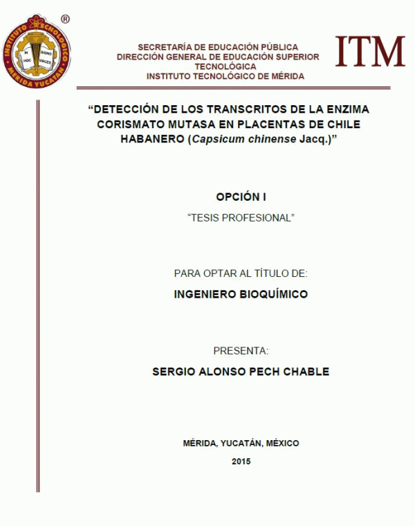 Detección de los transcritos de la enzima corismato mutasa en placentas de chile habanero (Capsicum chinense) [recurso electrónico] / Sergio Alonso Pech Chablé
