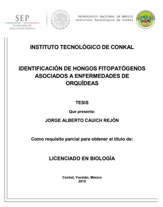 Identificación de hongos fitopatógenos asociados a enfermedades de orquídeas [recurso electrónico] / Jorge Alberto Cauich Rejón