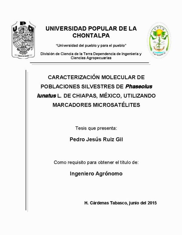 Caracterización molecular de poblaciones silvestres de Phaseolus lunatus L. de Chiapas, México, utilizando marcadores microsatelitales [recurso electrónico] / Pedro Jesús Ruiz Gil