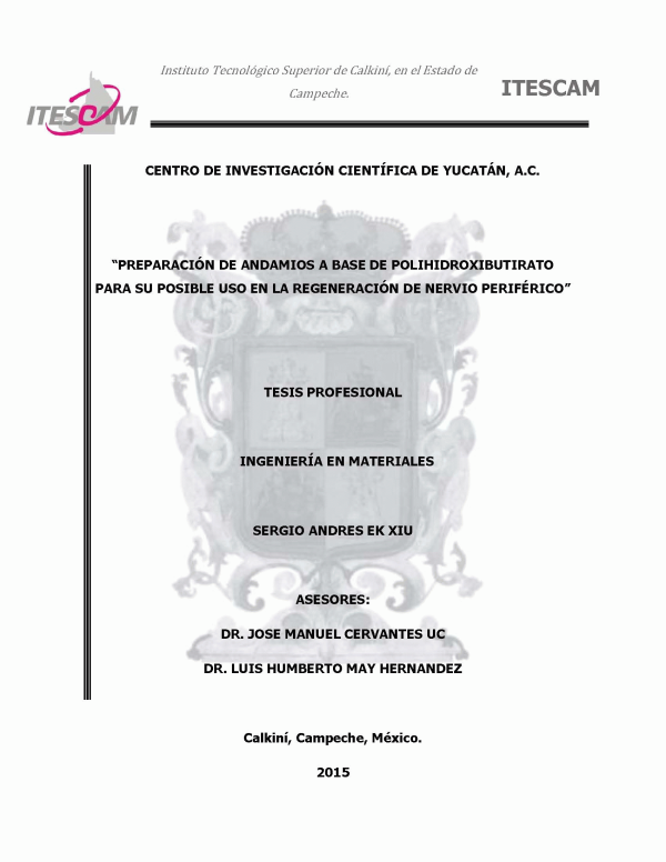 Preparación de andamios a base de polihidroxibutirato para su posible uso en la regeneración del nervio periférico [recurso electrónico] / Sergio Andrés Ek Xiu