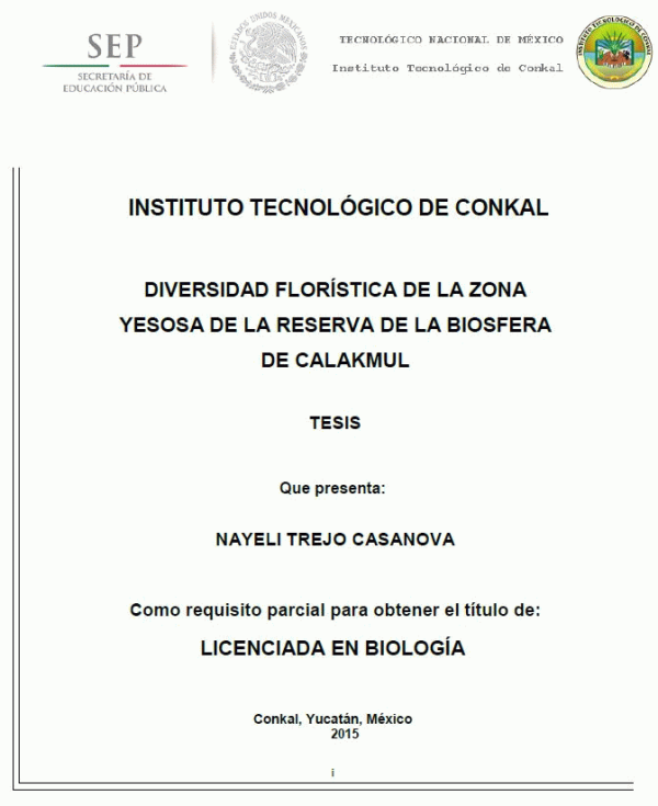 Diversidad florística de la zona yesosa de la reserva de la biósfera de Calakmul [recurso electrónico] / Nayeli Trejo Casanova