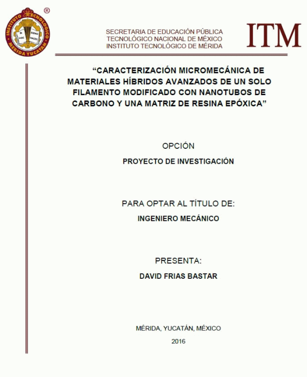 Caracterización micromecánica de materiales híbridos avanzados de un solo filamento modificado con nanotubos de carbono y una matriz de resina epóxica [recurso electrónico] / David Frias Bastar