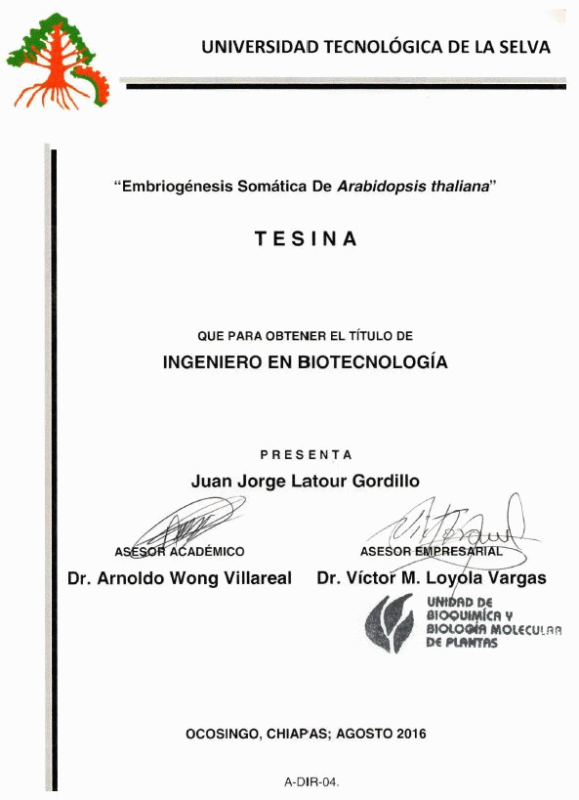 Embriogénesis somática de Arabidopsis thaliana [recurso electrónico] / Juan Jorge Latour Gordillo