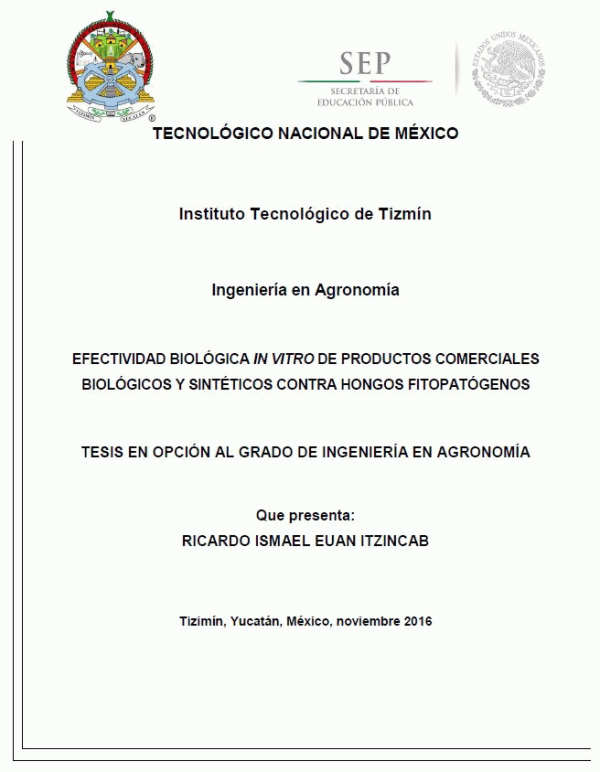 Efectividad biológica in vitro de productos comerciales biológicos y sintéticos contra hongos fitopatógenos [recurso electrónico] / Ricardo Ismael Euan Itzincab