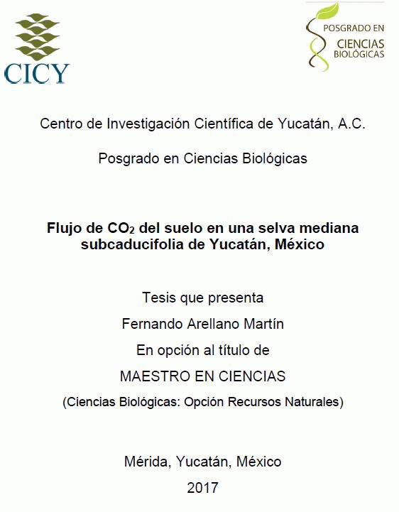 Flujo de CO2 del suelo en una selva mediana subcaducifolia de Yucatán, México [recurso electrónico] / Fernando Arellano Martín