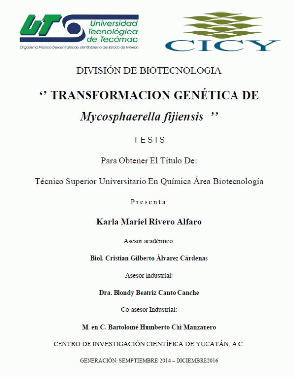 Transformación genética de Mycosphaerella fijiensis [recurso electrónico] / Karla Mariel Rivero Alfaro