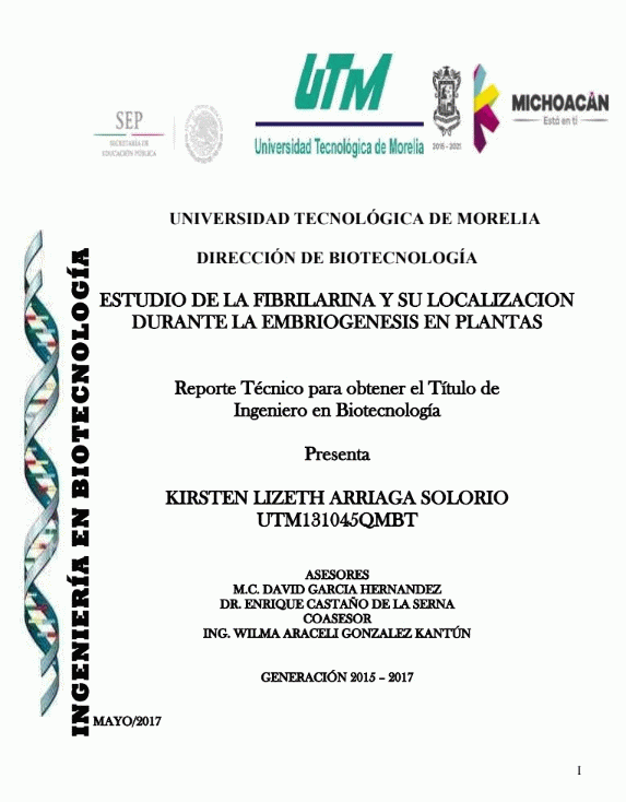 Estudio de la fibrilarina y su localización durante la embriogénesis en plantas [recurso electrónico] / Kirsten Lizeth Arriaga Solorio