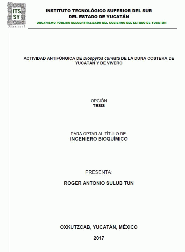 Actividad antifúngica de Diospyros cuneata de la duna costera de Yucatán y de vivero [recurso electrónico] / Roger Antonio Sulub Tun