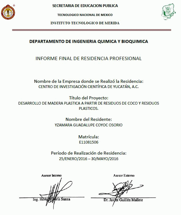Desarrollo de madera plástica a partir de residuos de coco y residuos plásticos [recurso electrónico] / Yzamara Guadalupe Coyoc Osorio