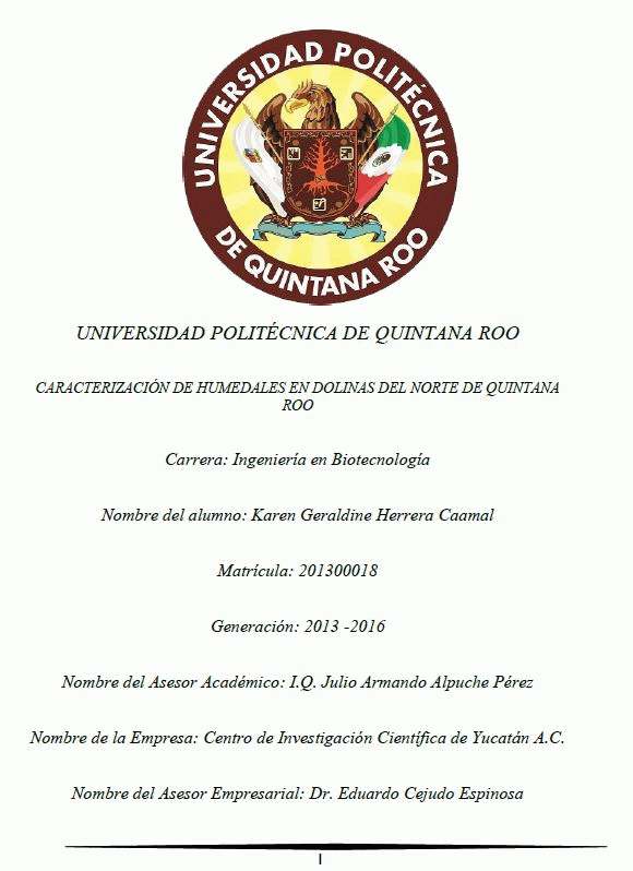 Caracterización de humedales en dolinas del norte de Quintana Roo [recurso electrónico] / Karen Geraldine Herrera Caamal