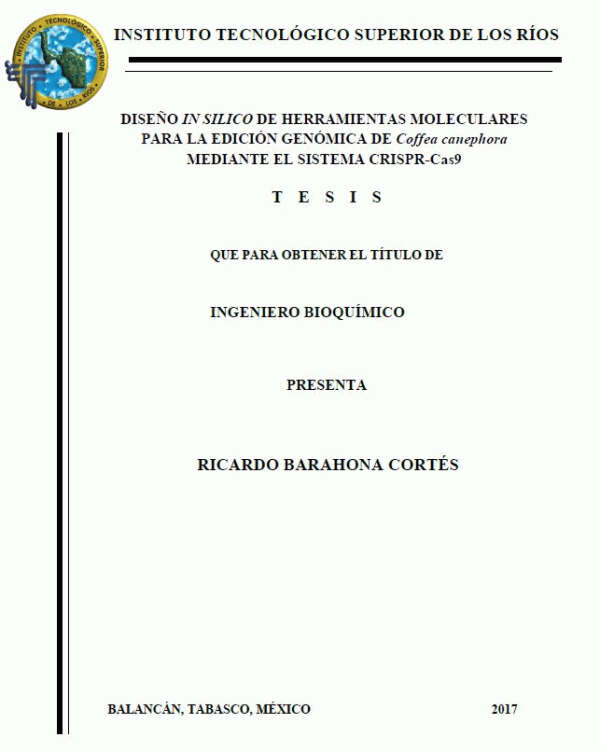 Diseño in silico de herramientas moleculares para la edición genómica de Coffea canephora mediante el sistema CRISPR-Cas9 [recurso electrónico] / Ricardo Barahona Cortés