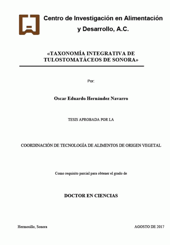 Taxonomía integrativa de tulostomatáceos de Sonora [recurso electrónico] / Oscar Eduardo Hernández Navarro