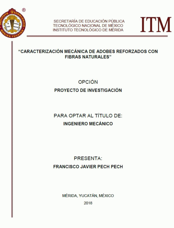 Caracterización mecánica de adobes reforzados con fibras naturales [recurso electrónico] / Francisco Javier Pech Pech