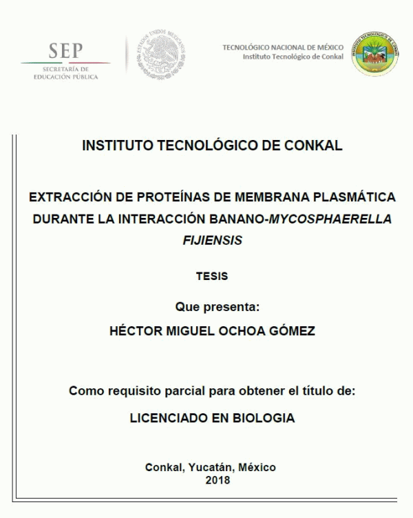 Extracción de proteínas de membrana plasmática durante la interacción banano-Mycosphaerella fijiensis [recurso electrónico] / Héctor Miguel Ochoa Gómez